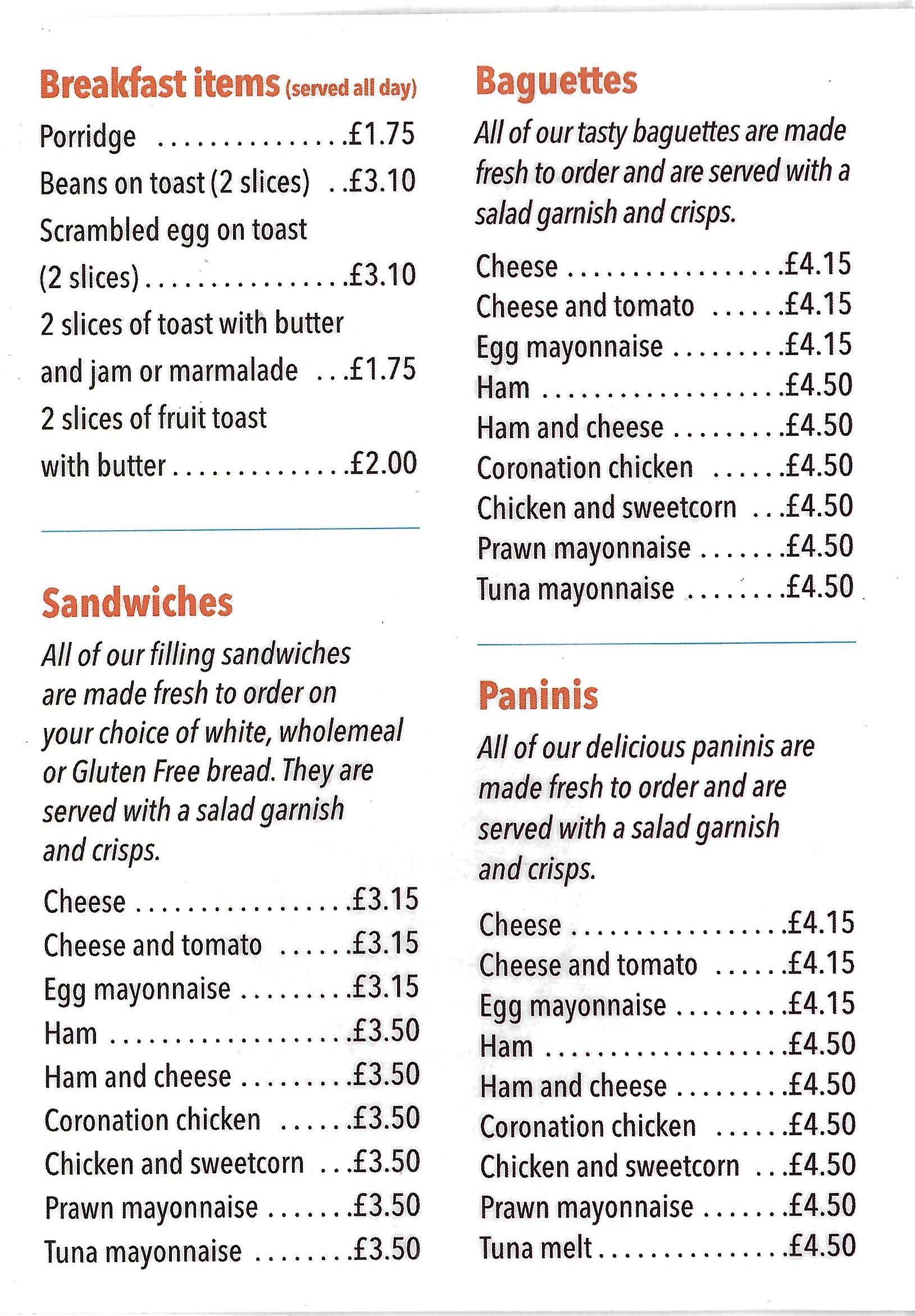 For lunch we serve a delicious selection of sandwiches, baguettes, paninis, jacket potatoes and soups with prices starting from £3.30.